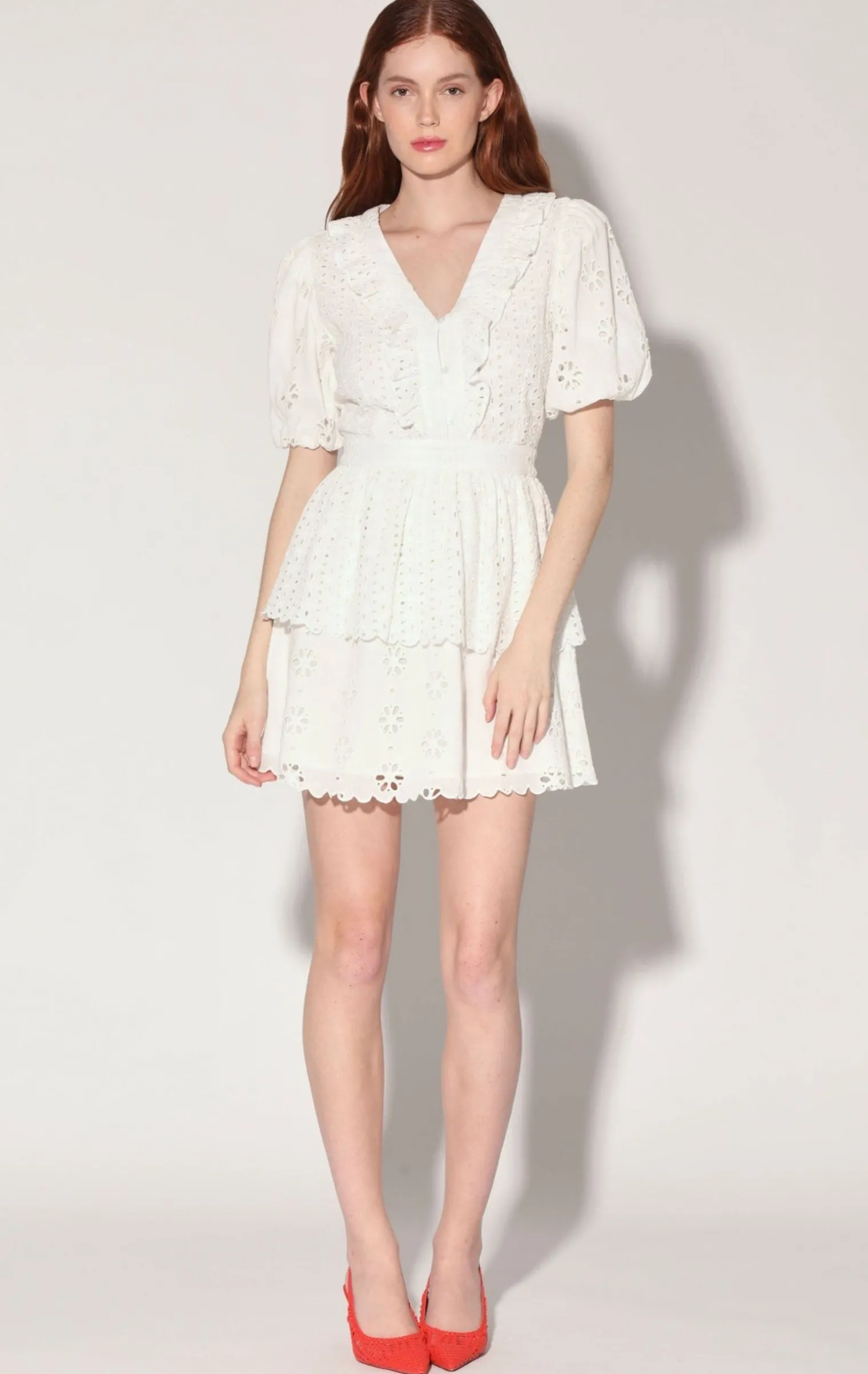 The Larisse Dress Is A Mini That Combines Feminine And Flirty Vibes With Its Ruffle Details And Beautiful Eyelet Fabric.