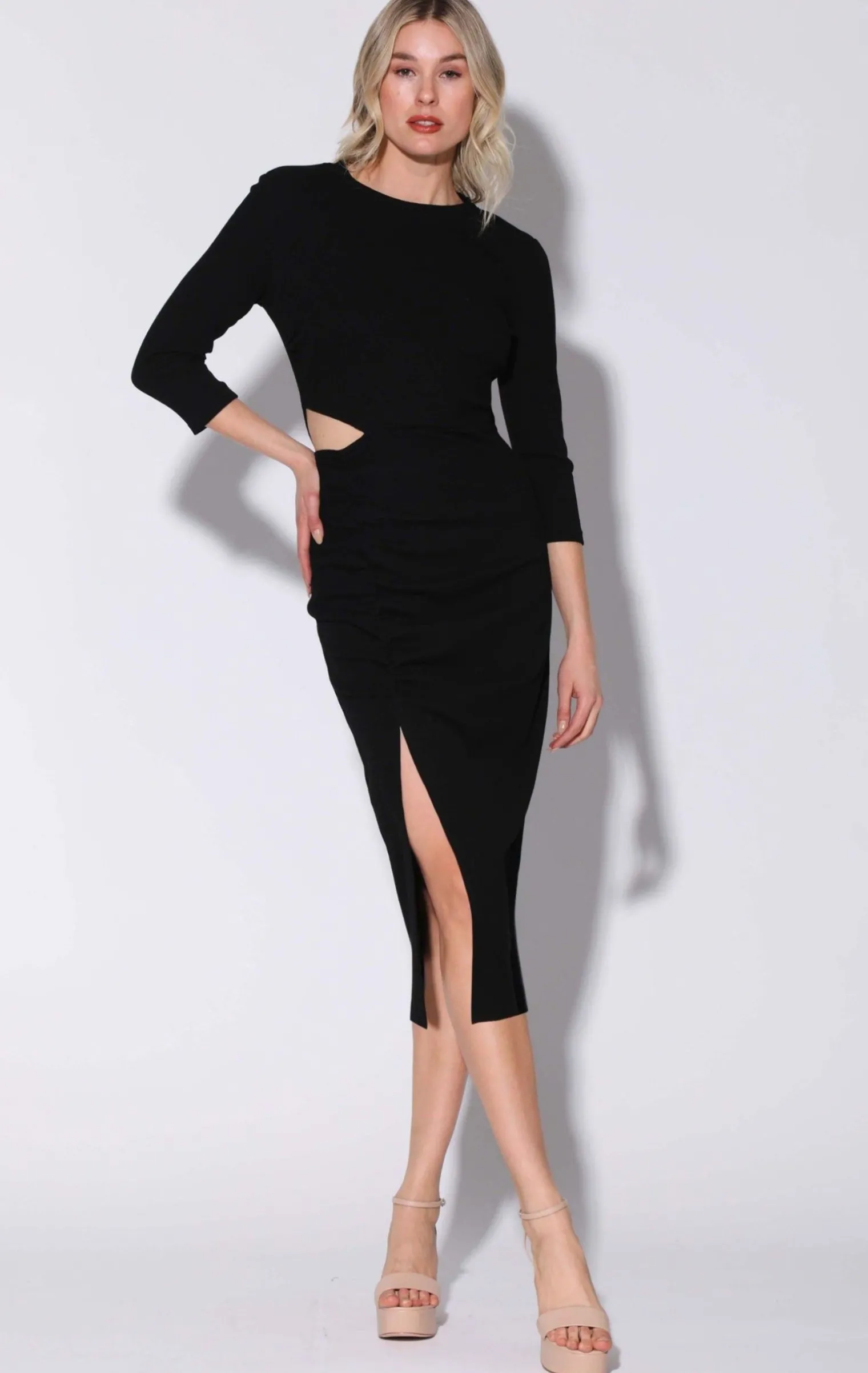 Sophisticated And Sleek, The Kalani Dress Is Ready For The Night! The Cut Out Detail And Slit On Wearer’S Right Add Just The Right Amount Of Edge