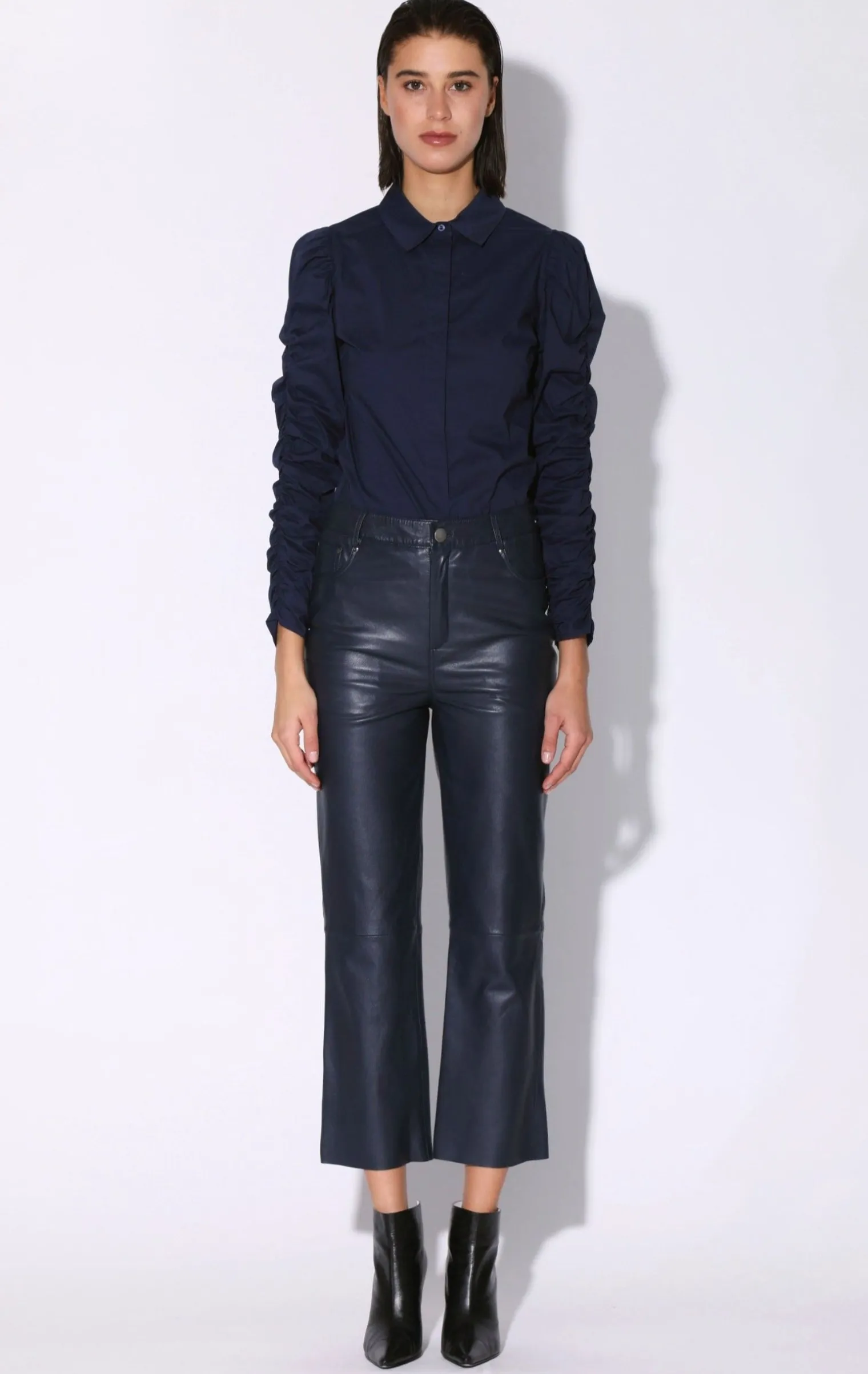 Collar With Button Down Front Closure; Long Sleeves With Puff Shoulder And Shirring Detail