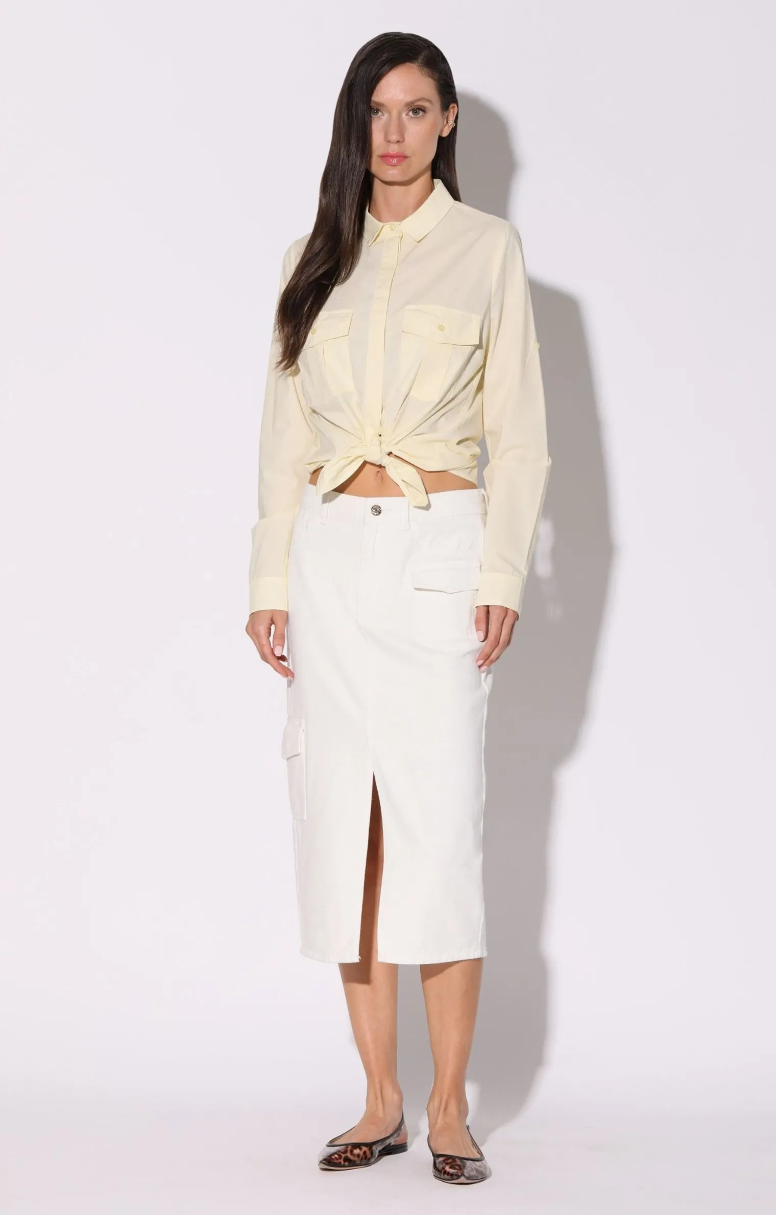 A Utility Style Button Down, The Marsha Top Features Front Chest Cargo Pockets And Roll Up Sleeve Option. Try It Tied In The Front For A Warmer Weather Update.