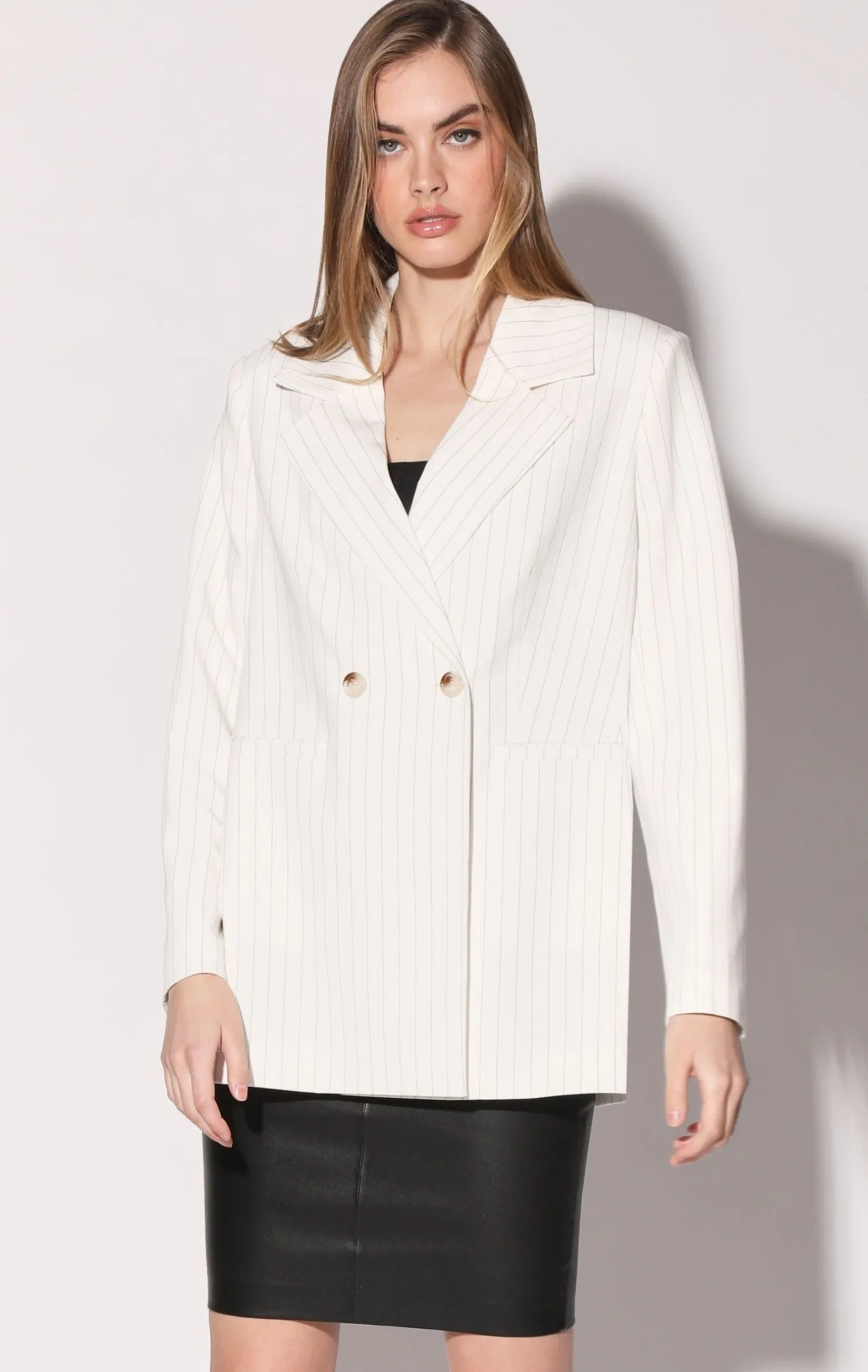 The Misha Blazer Is The New Power Jacket! This Longline Style With Notch Collar And Relaxed Fit, In Our Chic Pin Stripe Fabric, Definitely Commands Attention