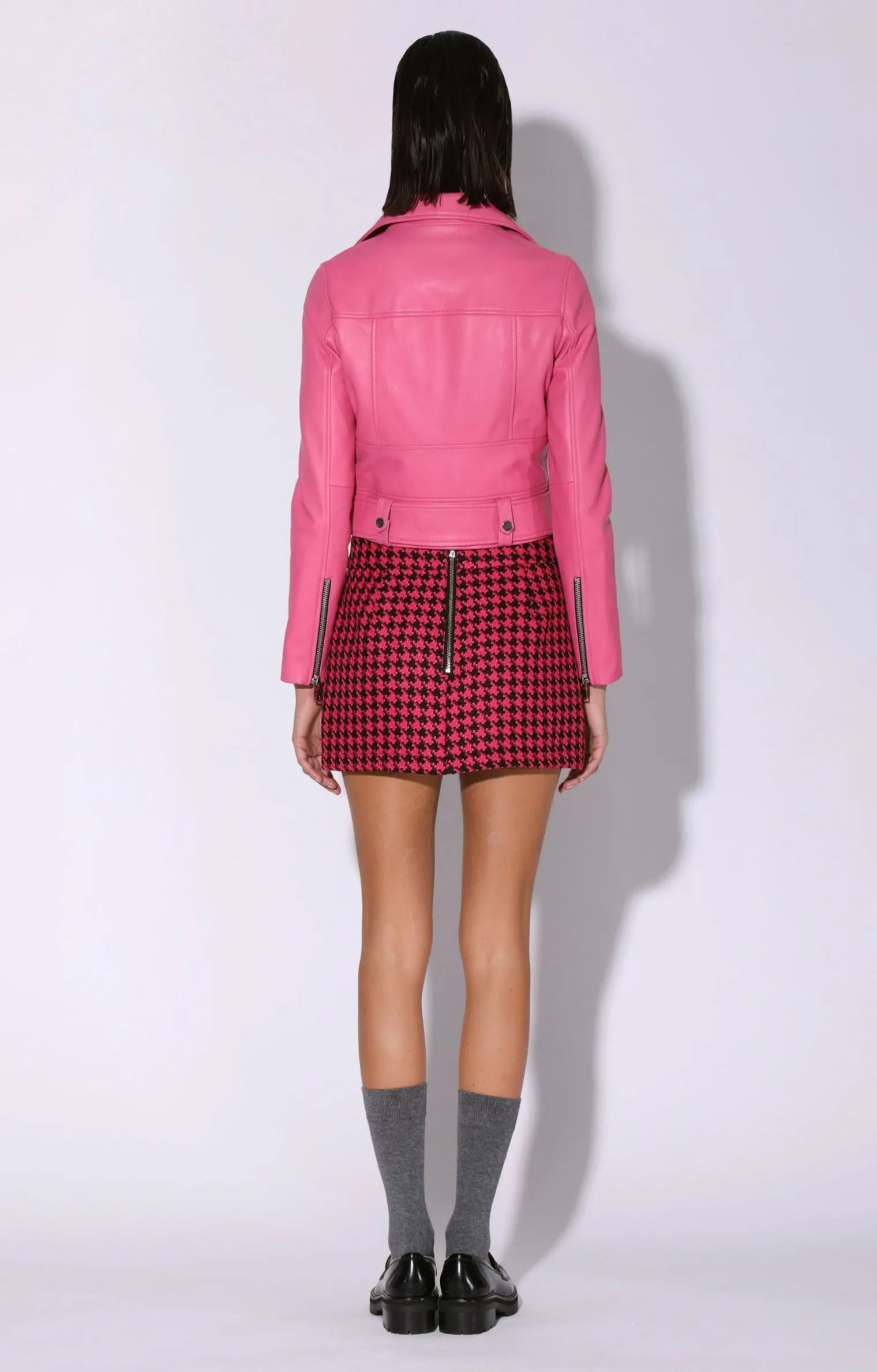 The Nicole Jacket Is A Stand Out Short Biker Jacket. With A Belted Waist And Contrast Zippers, It Brings A Cool Factor To Your Style