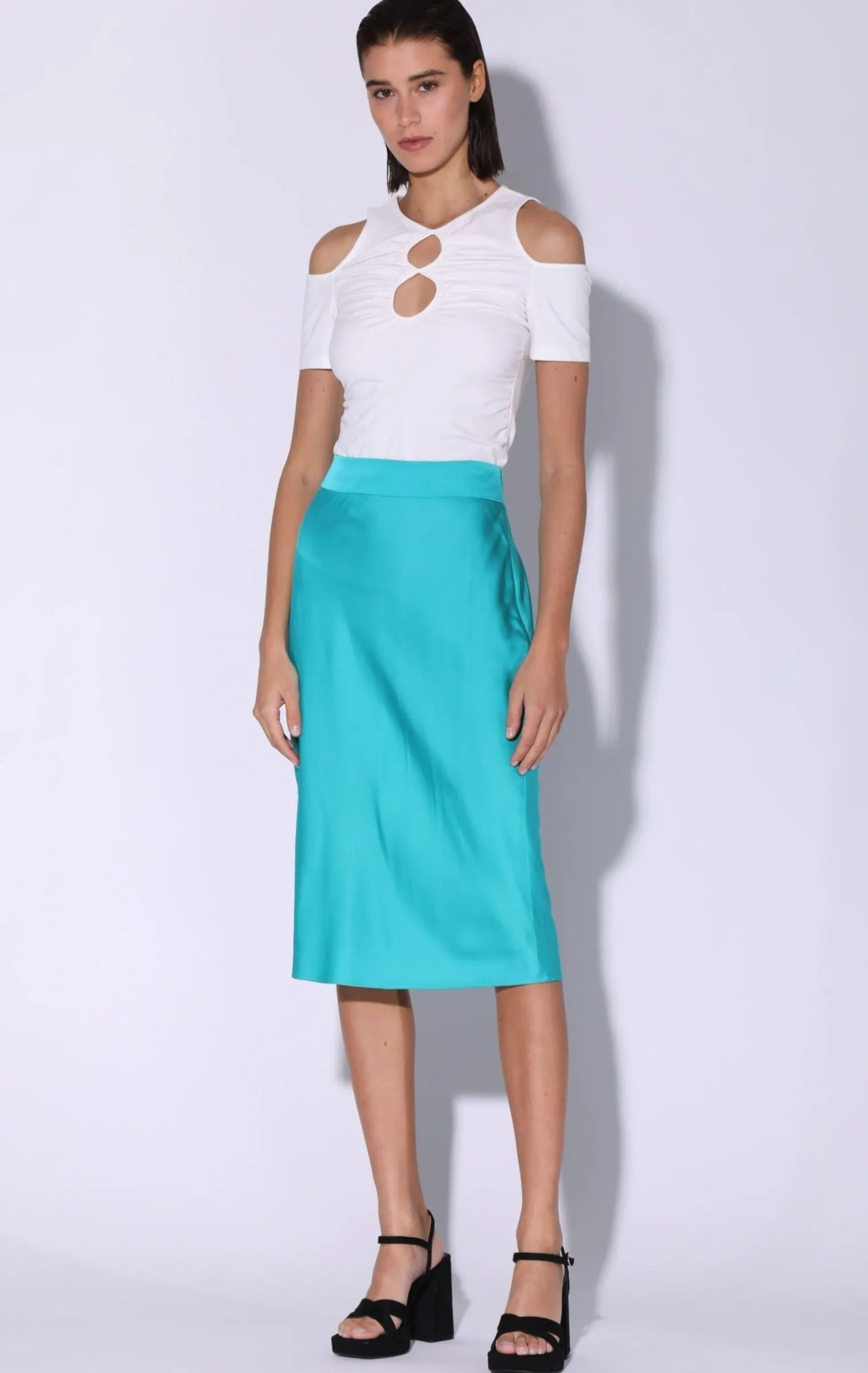 Featuring A Cold Shoulder And Front Cut Outs, The Basic Tee Gets A Night Out Upgrade With Our Renata Top!