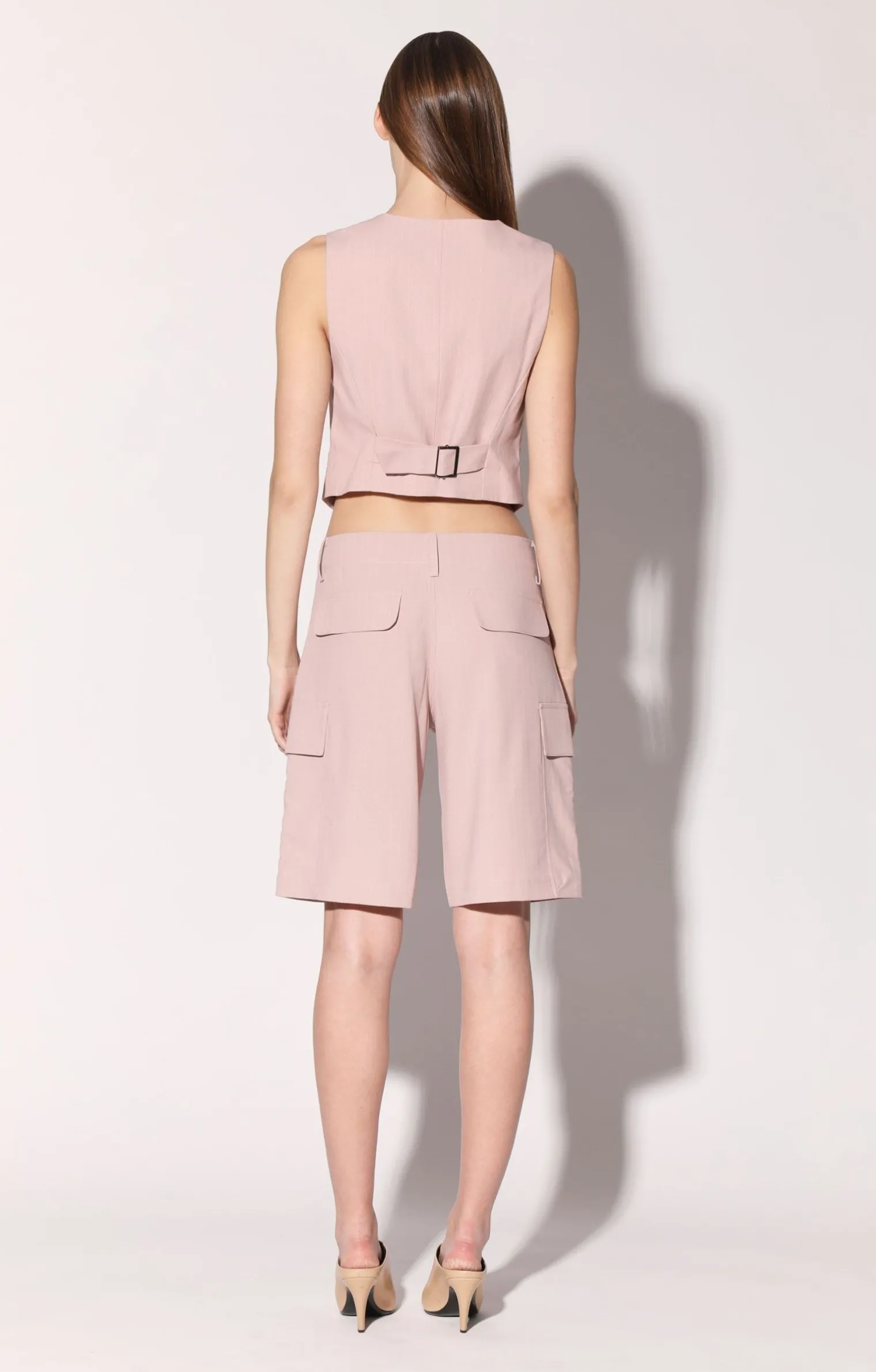 Fixed Waist; Low Rise; Relaxed Fit; Button Fly Front Closure; Belt Loops; Slant Pockets; Cargo Pockets On Each Side At Thigh; Wide Leg; Bermuda Length