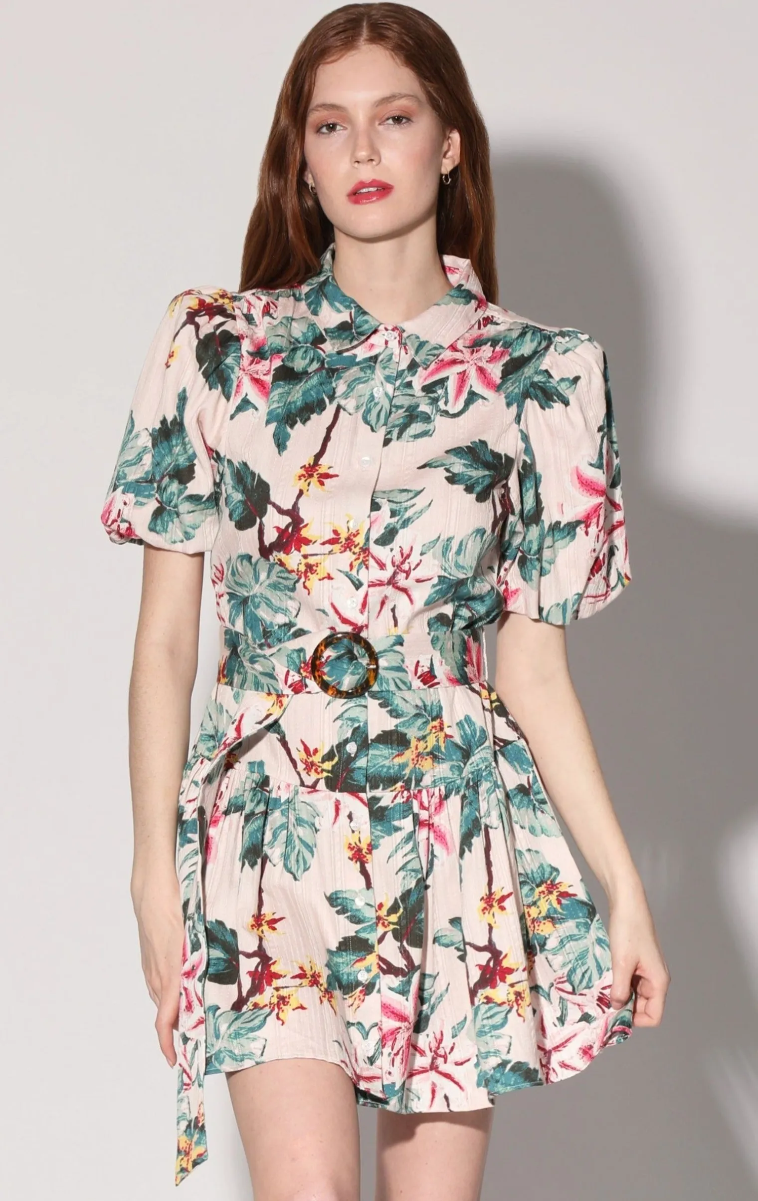 The Tyanna Dress Features A Drop Ruffle And Puff Short Sleeves That Make This Mini Fun And Flirty! Highlight Your Waist By Cinching The Self Belt
